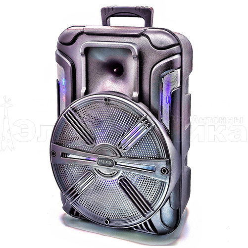 Регулировка низких/высоких частот / ECHO Регулировка громкости микрофона Подсветка динамика Отверстие под стойку В комплекте: кабель питания USB-5.5мм / микрофон проводной 3м / пульт ДУ Разъём MIC: 6.3 мм Bluetooth: есть Версия Bluetooth: 5.0 FM: есть USB: есть AUX: есть TF: есть Дисплей: есть Встроенный аккумулятор: 1.8 А Встроенный микрофон: нет Мощность (MAX): 40 Вт Цвет: черный Вес: 3960г Размер: 362*315*525 мм Материал: пластик