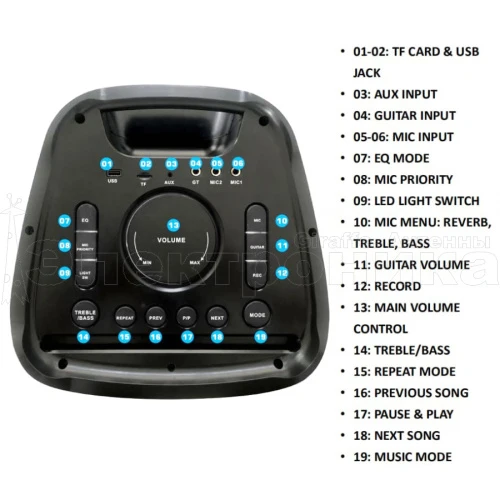 Мощность (MAX) - PMS 100W / PMPO 1000W / 10"woofer + 10" woofer