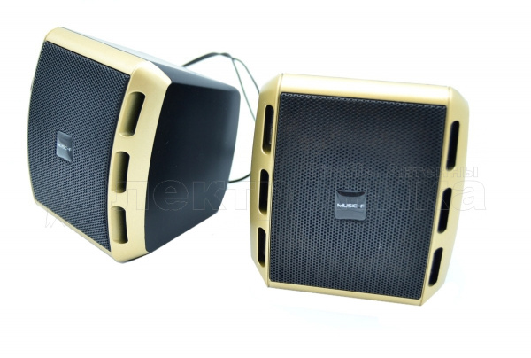 Материал: пластик USB 2.0, 3.5 мм 2 динамика 3W Размер: 10 х 9.5 х 8.5 см Регулятор громкости