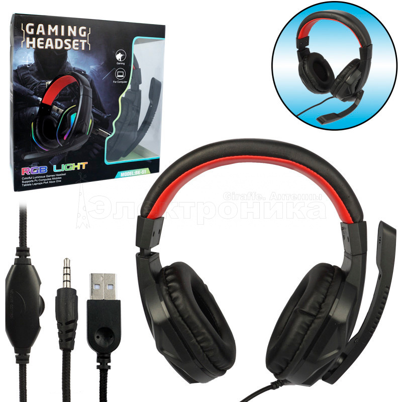 Наушники и гарнитуры, Наушники полноразмерные беспроводные, Наушники полноразмерные игровые BK-51 LED (черно-красные) с микрофоном