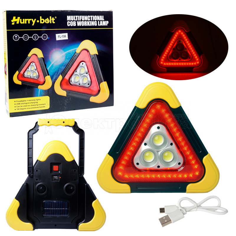 Знак аварийной остановки "Треугольник" со светодиодным фонарем работающий от аккумулятора и солнечной батареи. Аварийный многофункциональный фонарь с четырьмя режимами: высокая яркость освещения, низкая яркость, красный цвет освещения и аварийное предупреждение на дороге (красная треугольная вспышка) — режим аварийной вспышки с 36 красными светодиодами. Отличный прибор в дорожной обстановке, чтобы сделать Вашу жизнь ярче и безопаснее.