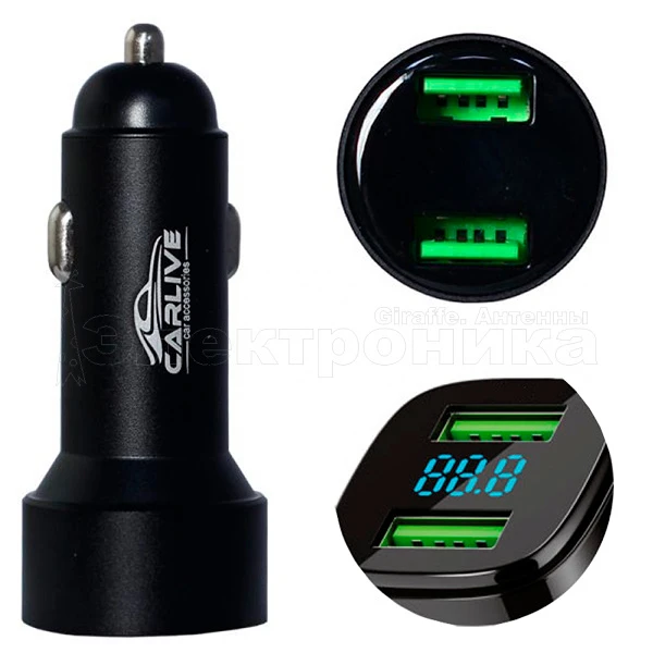 Зарядные устройства для телефонов, Автомобильные зарядные устройства Carlive, Автомобильное зарядное устройство CarLive CR16 12-24V 5V/2.4A 2USB с инд. вольтметра