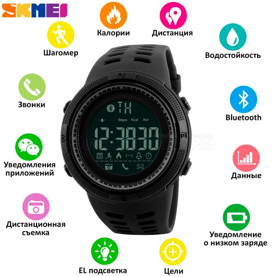 Часы соединяются со смартфоном по Bluethoth (поддержка Android 4.3 и выше / IOS 8.0 и выше) и издают звуковое оповещение.