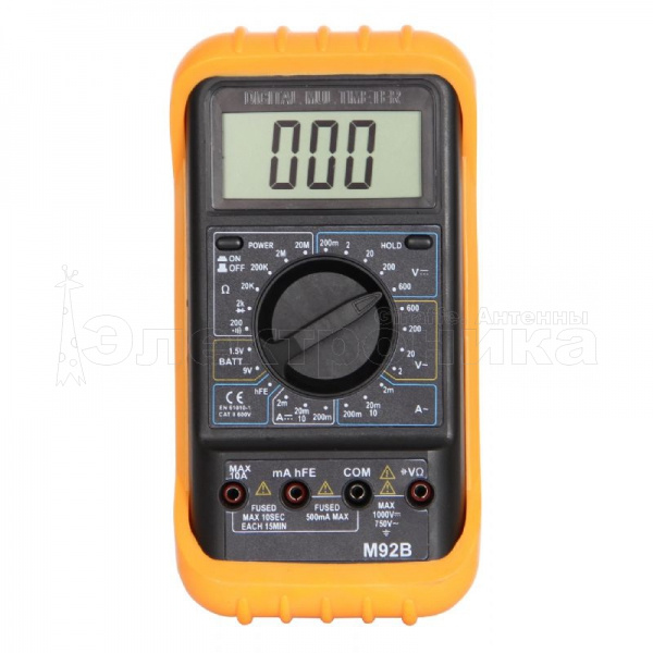 Общие характеристики Экран 1999-разрядный ЖК-дисплей, 63 x 27 мм Питание 9 В батарейка (6F22) Габариты 166 x 85 x 32 мм Вес 198 г Измерения Постоянное напряжение (DC) 200 мВ / 2000мВ / 20 В / 200 В / 600 В; ±(0.5%+1) Переменное напряжение (AC) 200 В / 600 В; ±(0.8%+3) Постоянный ток (DC) 200 мА / 2000 мА / 20мА/ 200 мА/ 10А; ±(0.8%+1) Переменный ток (AC) 200uA-10A ±(0.8%+1) Сопротивление 200 Ом / 2000 Ом / 20кОм/ 200 кОм/ 20 мОм; ±(0,8%+1) Специальные функции Выбор диапазона Ручной Тестирование диодов: есть Тестирование транзисторов: есть Функция удержания данных: есть Теста батареи:1,5 В/9 в