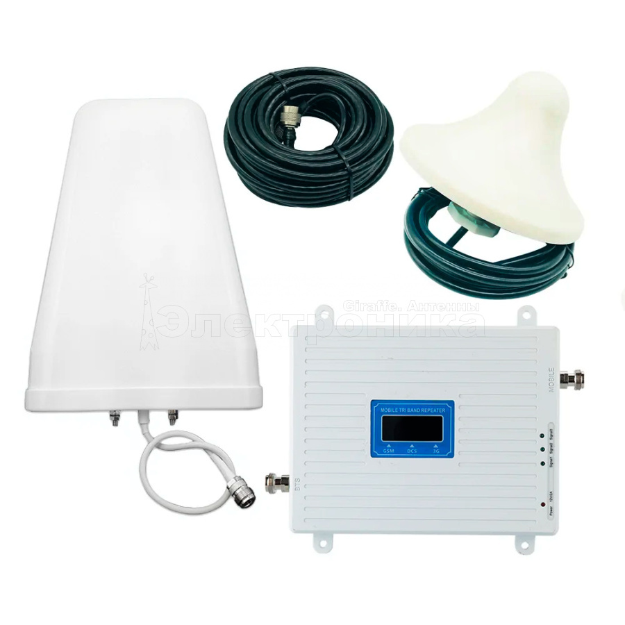 Ретрансляторы телефонных сигналов обеспечивают отличное качество связи внутри помещений, устраняя проблемы со слабым сигналом(внешний сигнал остаётся стабильным). Трехдиапазонный репитер легко устанавливается и управляется, в комплекте 2 антенны, минимизирует помехи. Он также улучшает электромагнитную обстановку в помещении, продлевает время работы аккумуляторов мобильных телефонов и снижает их излучение. Идеально подходит для использования дома, в офисе и других помещениях.