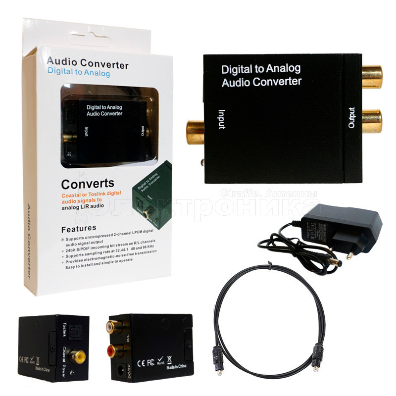 Конвертер Digital to Analog Audio Converter преобразует цифровой в аналоговый аудиосигнал . Предназначен для домашнего и профессионального использования.