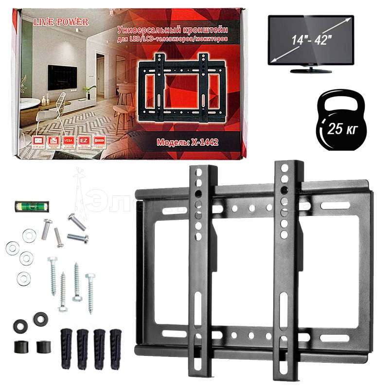 Кронштейн для телевизора 14-42" Live-Power X-1442 на стену для ТВ/Монитора до 25кг