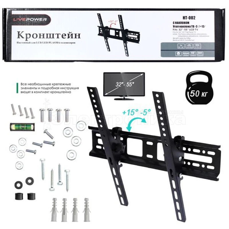 Аксессуары для телевизоров, Кронштейны для ТВ, Кронштейн наклонный для ТВ HT-002 (32"/55")