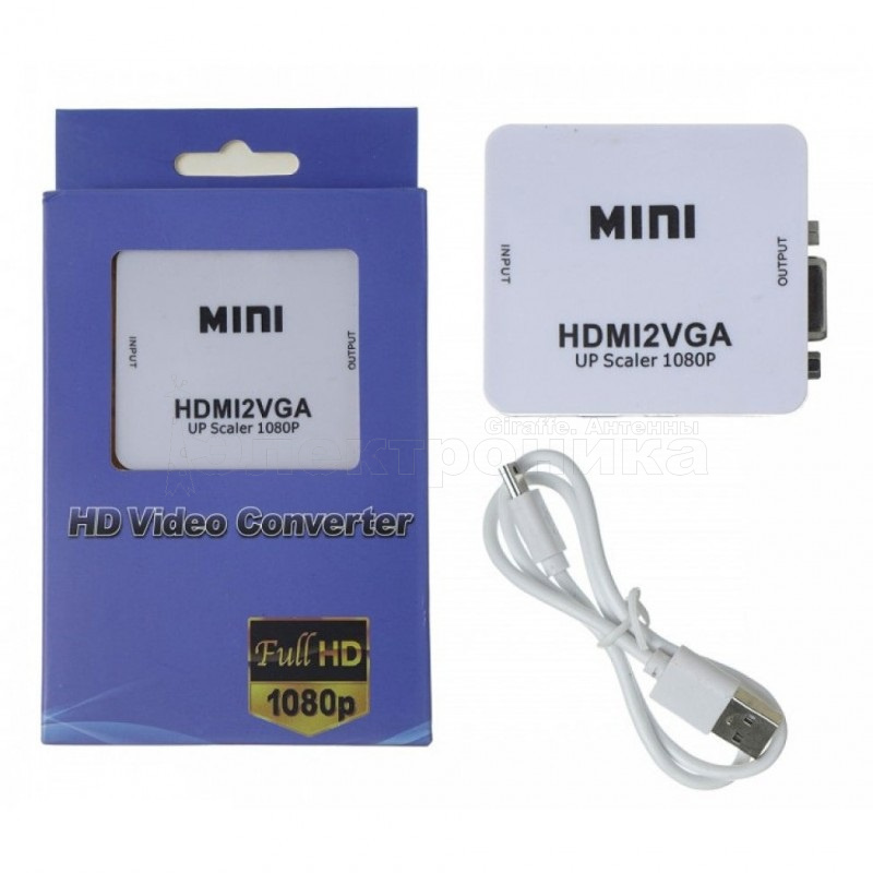HDMI VGA переходник с дополнительным питанием конвертирует цифровой сигнал HDMI в аналоговый сигнал VGA + аналоговый аудио сигнал 3,5 мм (не входит в комплект). Конвертация происходит только в одном направлении с HDMI в аналоговый сигнал VGA + аудио. Позволит подключить монитор, телевизор или проектор с аналоговым VGA входом к HDMI устройству, имеющему только HDMI выход. С его помощью можно подключить SmartTV, ноутбук, компьютер, тв-тюнер, тюнер Т2, планшет, DVD, Xbox360, PS4 и множество других устройств, которые имеют HDMI выход, к монитору, телевизору, проектору, которые имеют VGA вход. Адаптер HDMI VGA поддерживает видео высокой четкости FullHD. Максимальное поддерживаемое разрешение 1920*1080 пикселей. Рабочая частота 60 Гц. Преобразует цифровой видео и аудио-сигнал HDMI в аналоговый интерфейс VGA и audio minijack 3.5 mm. Этот конвертер решает проблему конфликта между цифровыми и аналоговыми сигналами. Дополнительное питание обеспечит бесперебойную работу Вашего оборудования в высоком качестве изображения