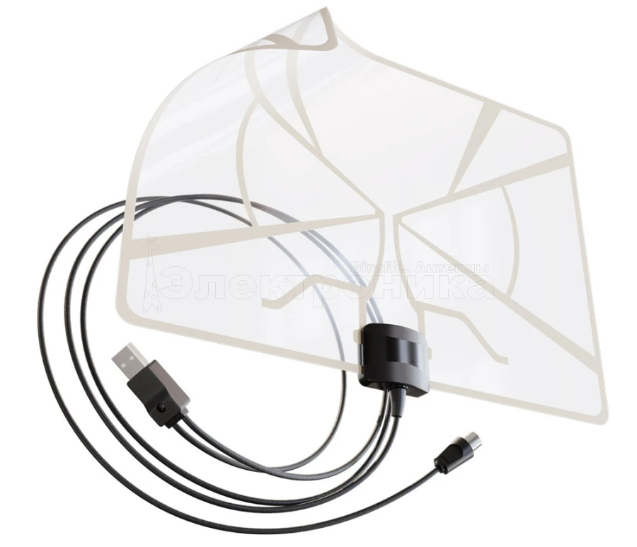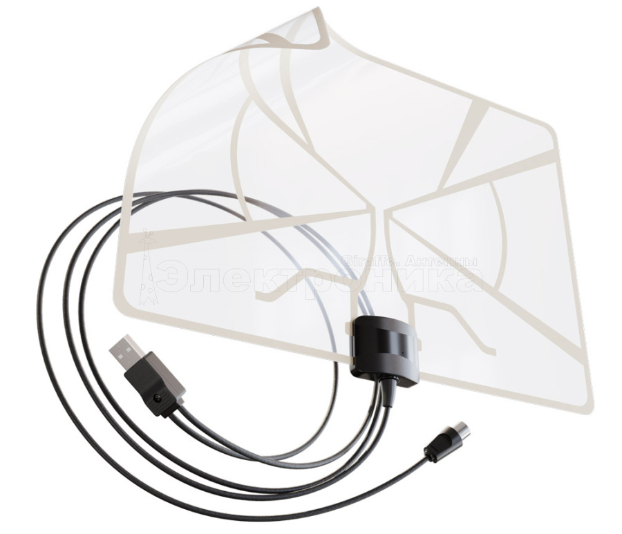 Плоская ТВ антенна Диаграмма-USB со встроенным усилителем.
