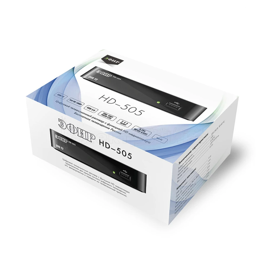 Эфир HD-505 это цифровой телевизионный ресивер с функцией HD-медиаплеера для приема эфирного цифрового телевидения в формате DVB T2