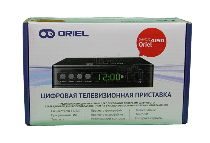 Oriel 415D цифровой эфирный тюнер для просмотра эфирных цифровых каналов вещаемых в новом стандарте. Данный тюнер предусмотрен для просмотра цифровых вещаемых каналов, а также просмотра мультимедиа с флеш носителя благодаря usb-разъёму, а также чтобы подключать wi-fi адаптер мт 7601, и была возможность пользоваться интернет сервисами, такими как youtube, мегого, почта, погода, а также iptv - интернет телевидения, с помощью данного сервиса вы сможете существенно расширить количество каналов, только просматривать их не с антенны, а благодаря интернету. Для этого вам потребуется с флеш носителя загрузить рабочий плейлист, и у вас откроется доступ к каналам и телепередачам, которые вам нужны, либо которые есть в плейлисте.