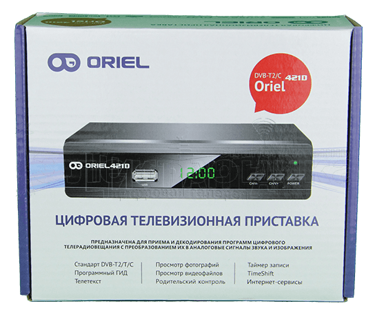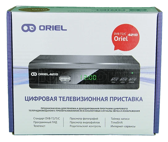 Oriel 421D комбинированный цифровой тюнер, предназначенный для просмотра цифрового эфирного и кабельного телевидения T2/C. Данный тюнер выполнен из металлического корпуса в черном или сером цвете, всего есть два цвета, либо комбинированные цвета.